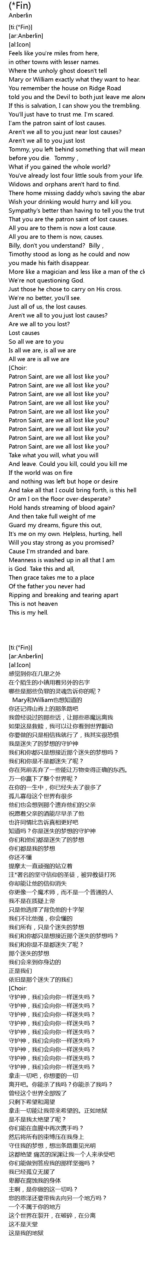 | [03:51.73] | Patron Saint, are we all lost like you? |
