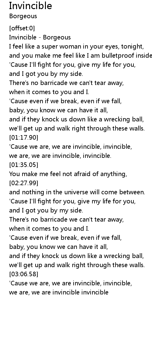 [03:07.33] 'Cause we are, we are invincible, invincible,