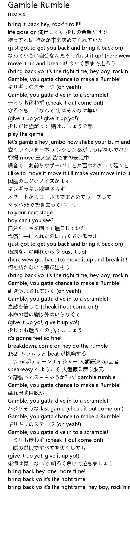 | let' s gamble hey jumbo now shake your bum and do the rumble | |