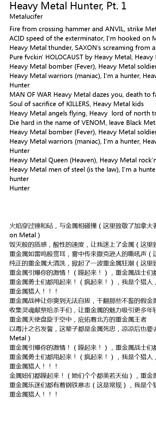 [04:17.796] Heavy Metal men of steel (is the law), I'm a hunter,Heavy Metal hunter