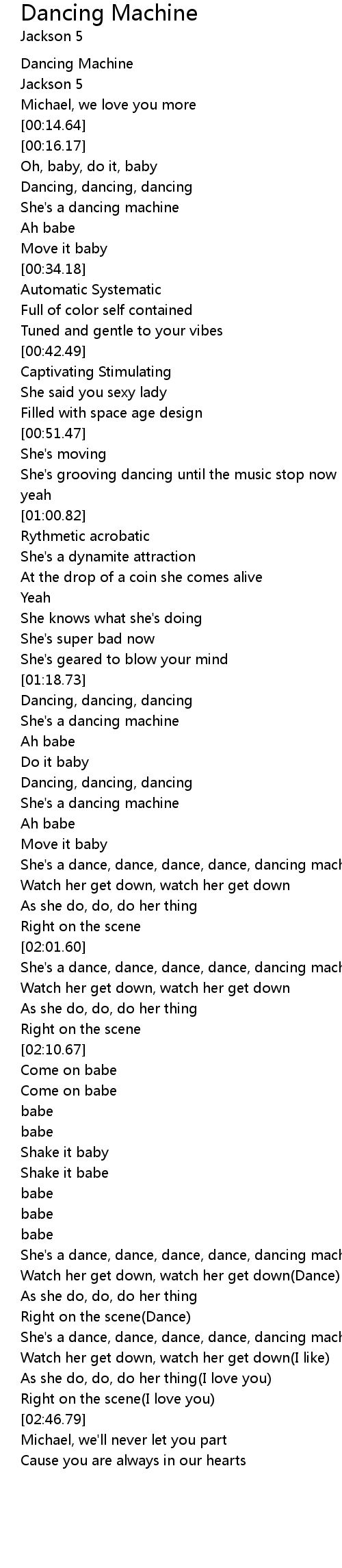 She's a dance, dance, dance, dance, dancing machine(I like it) |
