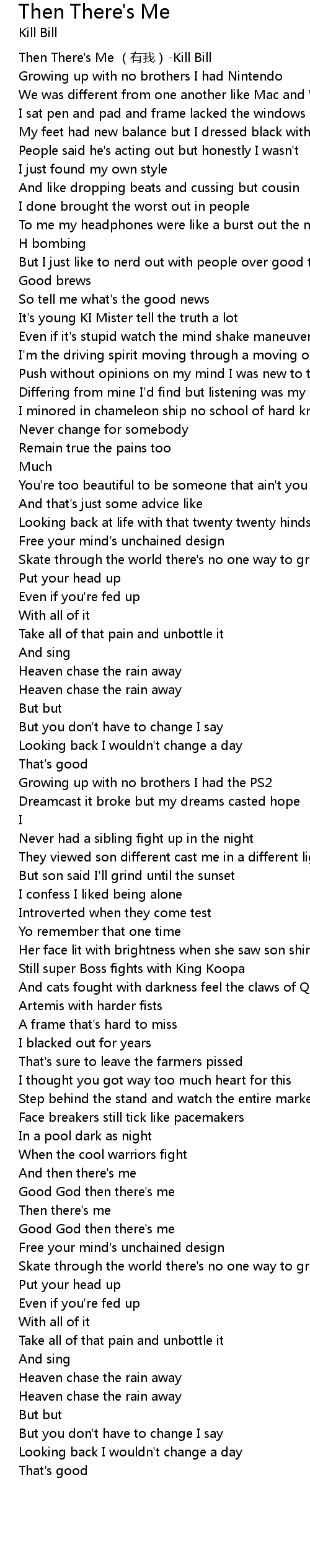 | [00:00.00] | Then There' s Me you wo Kill Bill |