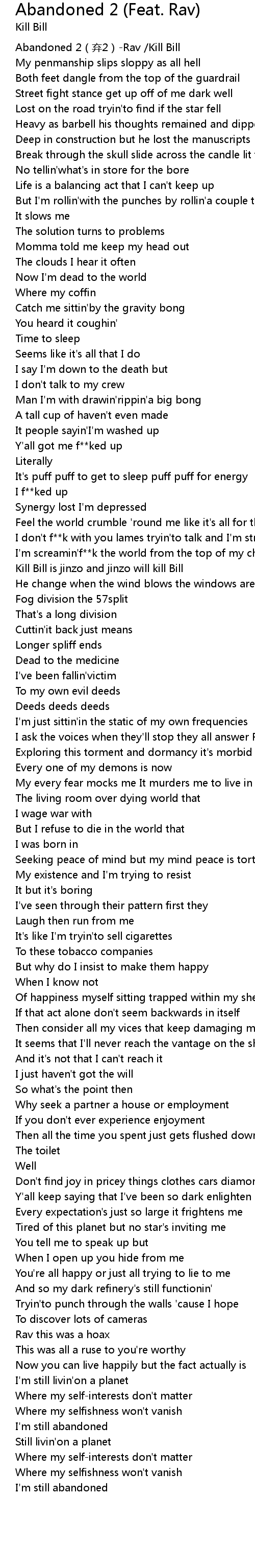 | [00:00.00] | Abandoned 2 qi 2 Rav Kill Bill |