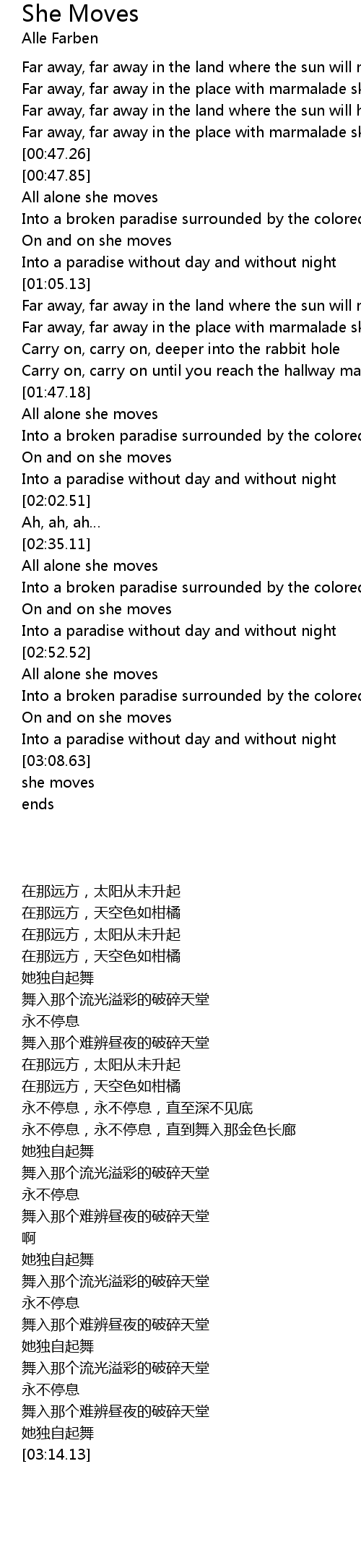 | [00:17.35] | Far away, far away in the land where the sun will never rise |