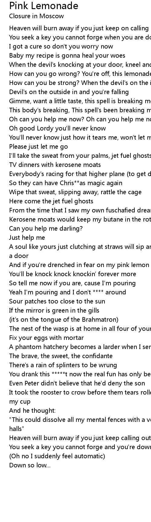 And if you're drenched in fear on my pink lemon shores |