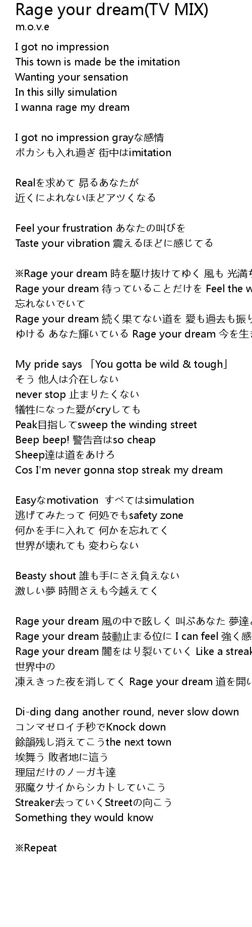 | Rage your dream gǔ dòng zhǐ wèi I can feel qiáng gǎn | |