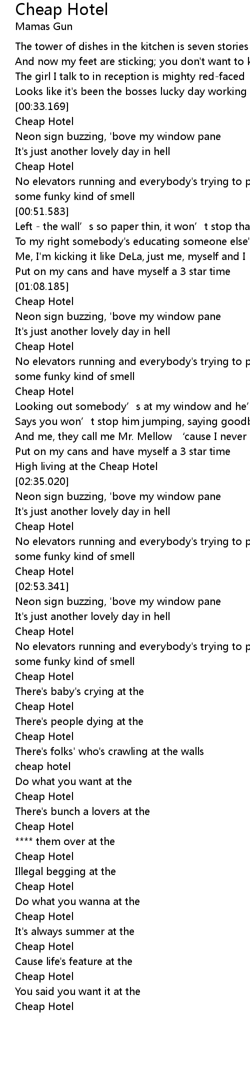| [02:51.777] | Cheap Hotel |