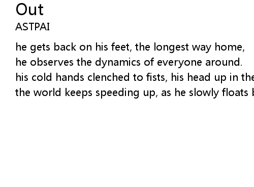 | the world keeps speeding up, as he slowly floats by. |