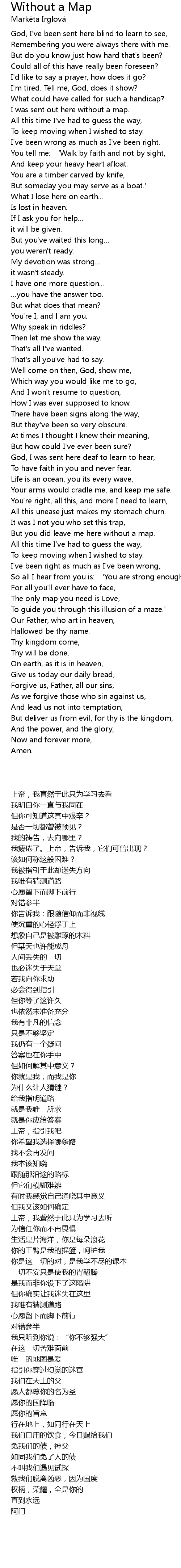 | [00:33.20] | I'd like to say a prayer, how does it go? |