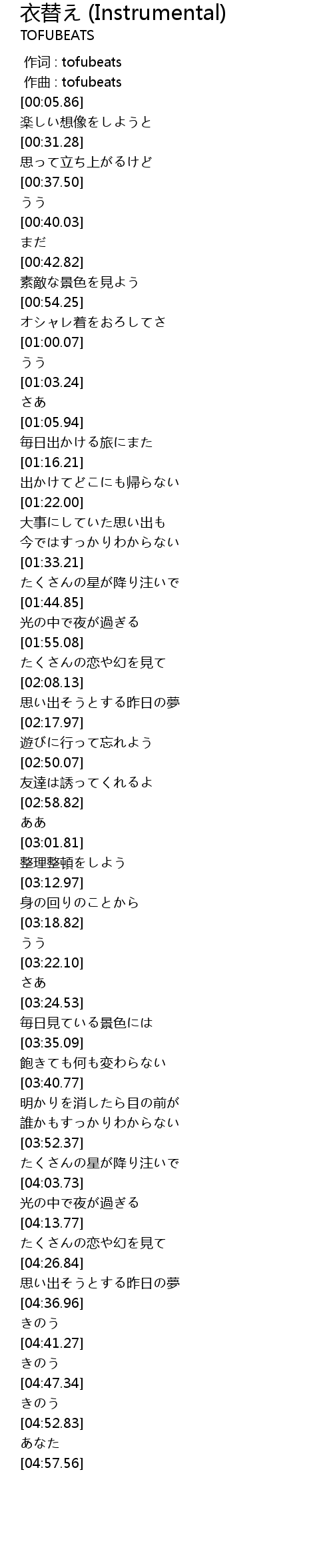 作词 : tofubeats |