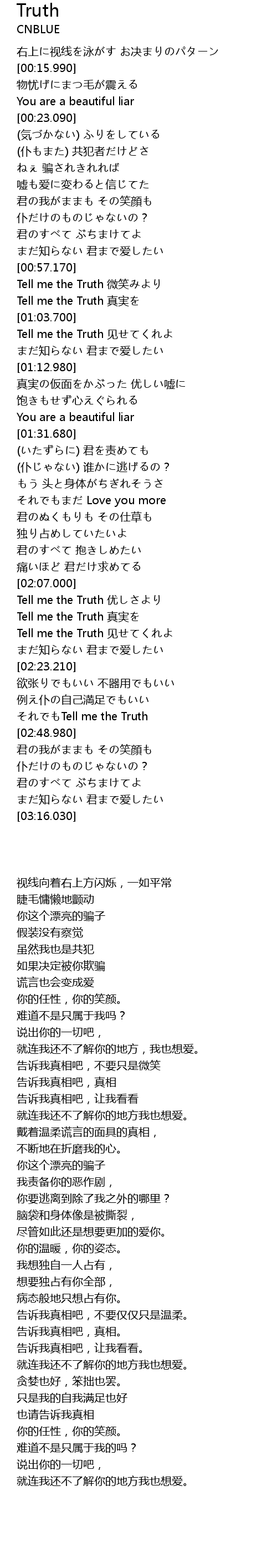| [02:11.210] | Tell me the Truth zhēn shí |