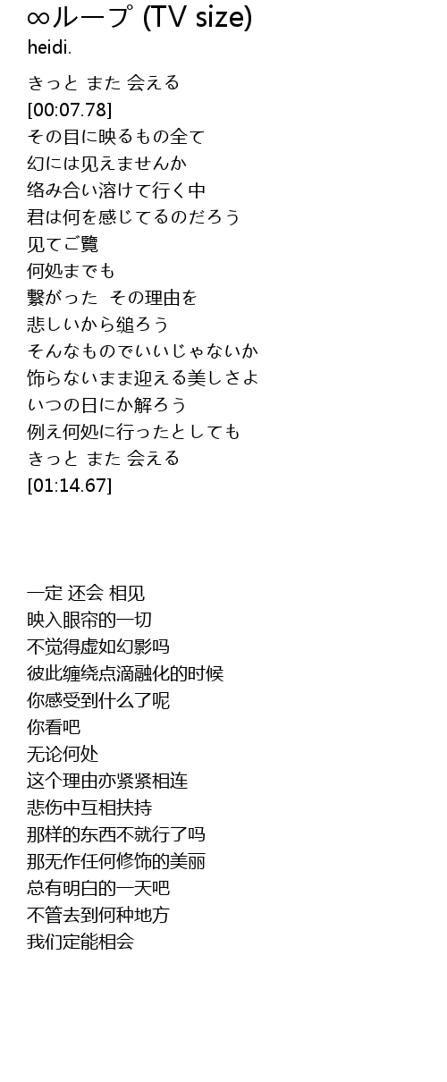| [01:07.43] | きっと また 会える |