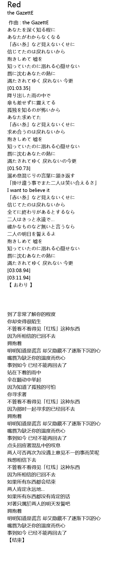 | [02:59.42] | 満たされてゆく 戻れない 今更 |