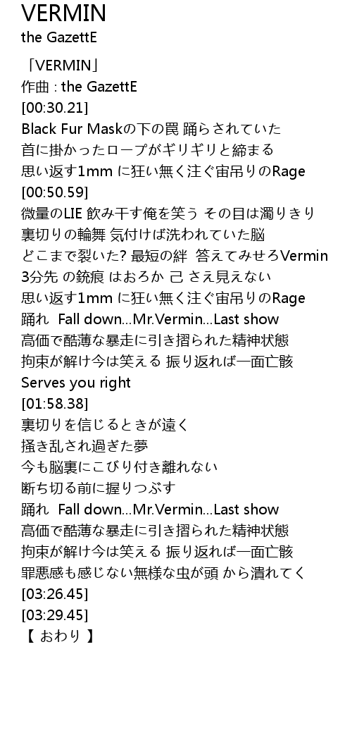 | [00:01.21] | 「VERMIN」 |