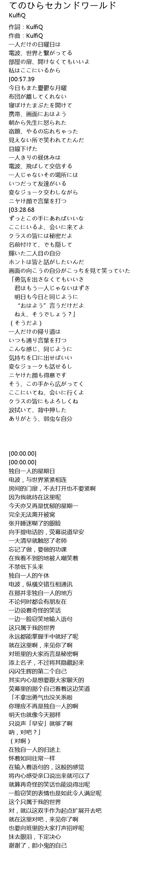 | [01:32.24][03:28.68] | 私だけのこの世界が |