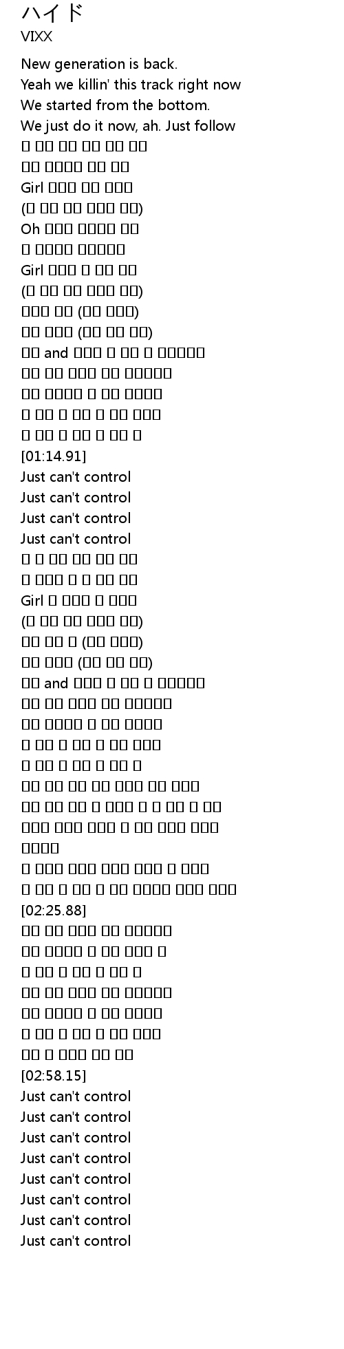 | [02:13.69] | 막으려 해봐도 날뛰는 내 모습 병적인 수위를 초월했어 |