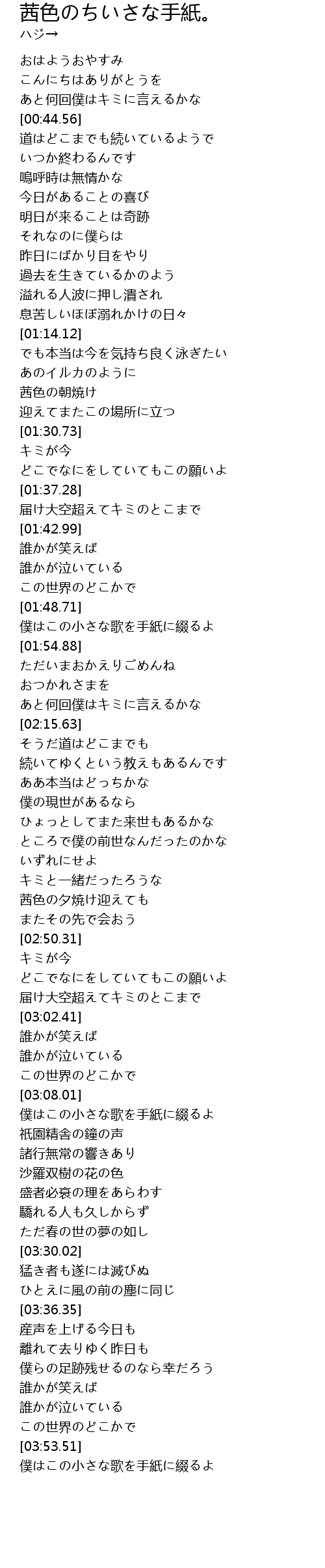 | [03:54.16] | 僕はこの小さな歌を手紙に綴るよ |