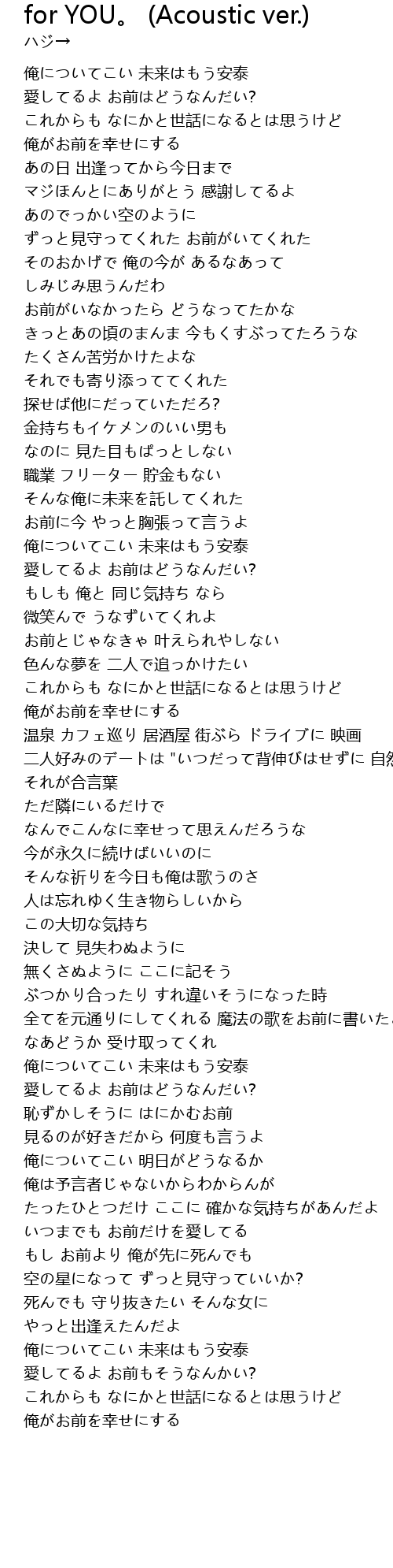 | Song | for YOU。 (Acoustic ver.) |