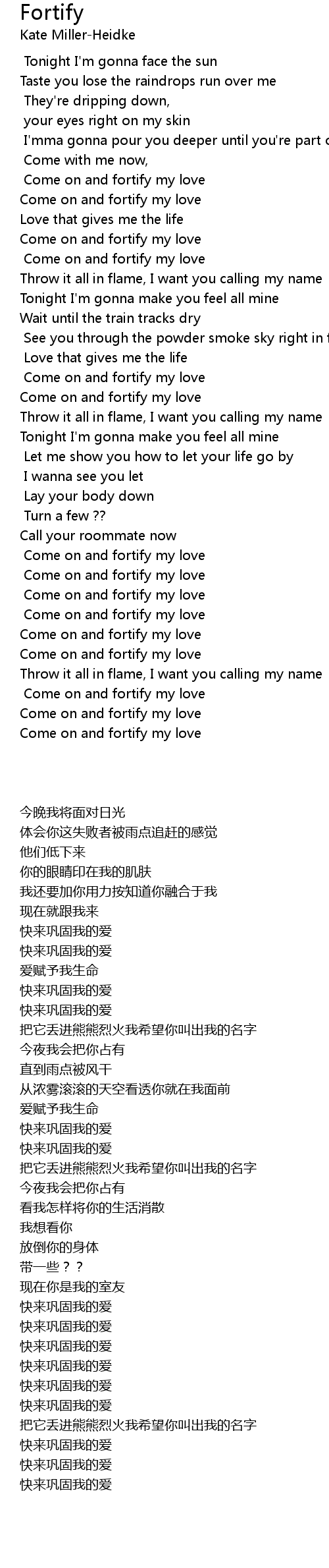 Come on and fortify my love |