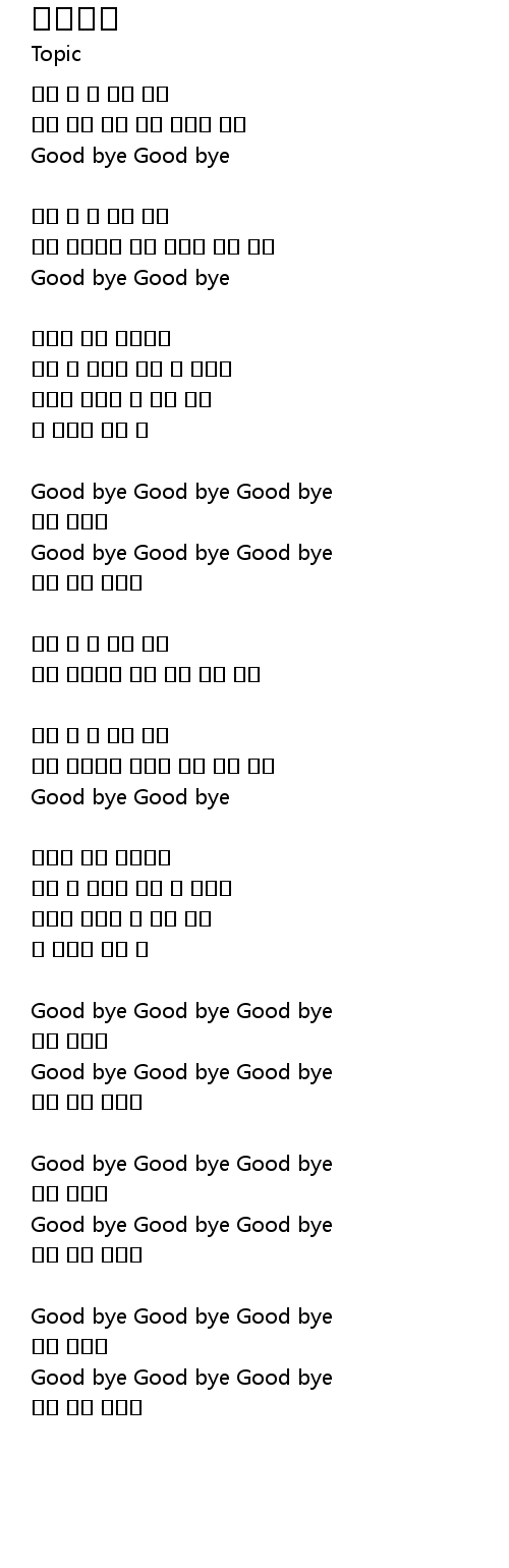 Good bye Good bye Good bye