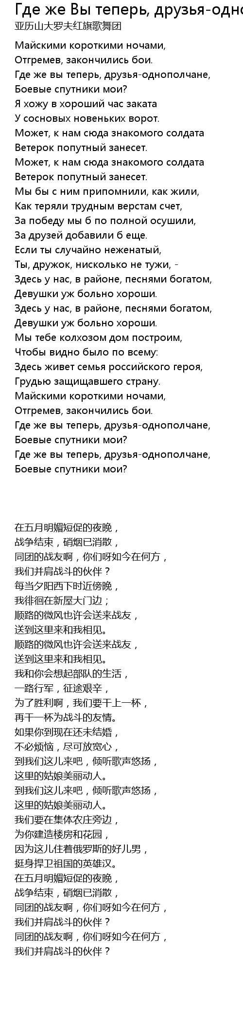 Где же вы теперь, друзья-однополчане, |