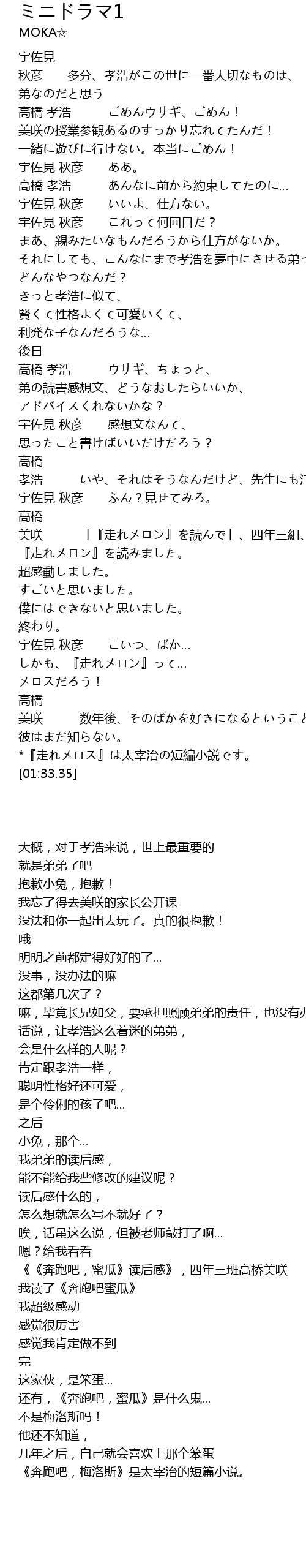 | [01:33.30] | *『走れメロス』は太宰治の短編小説です。 |