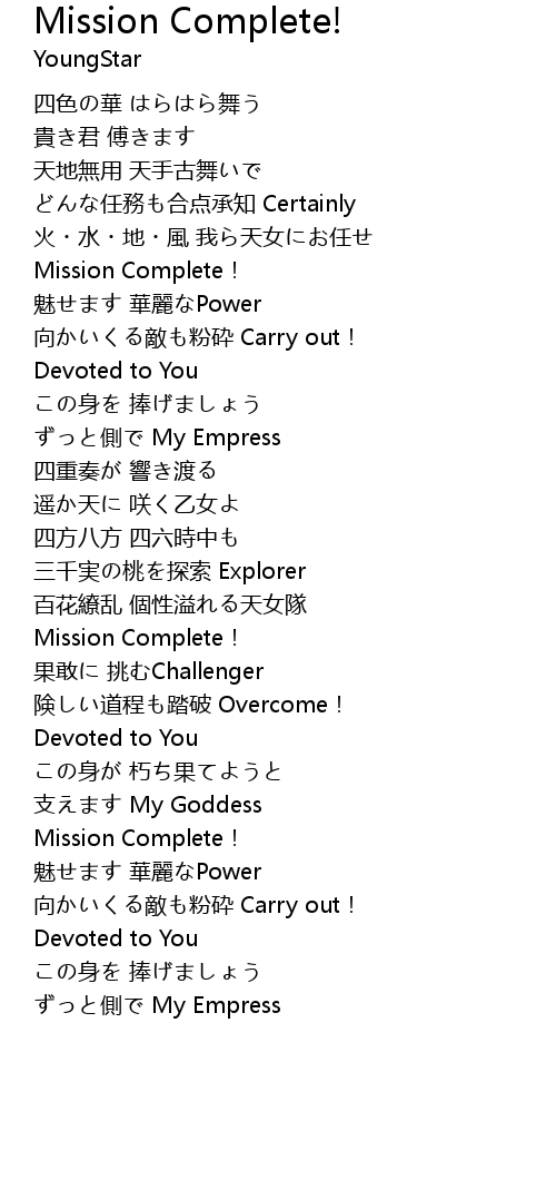 | Song | Mission Complete! |