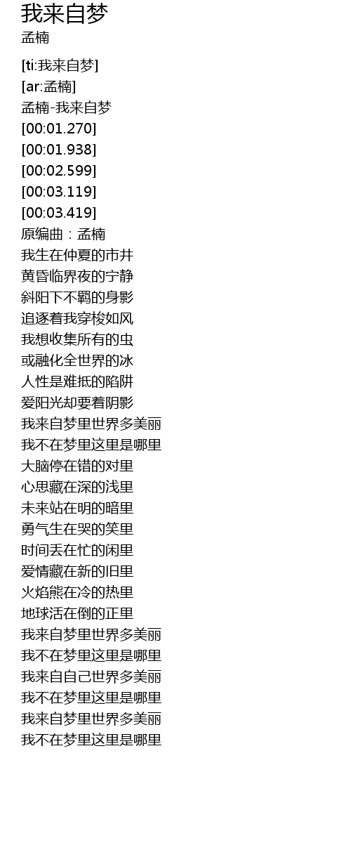 | [01:01.531] | 我来自梦里世界多美丽 |