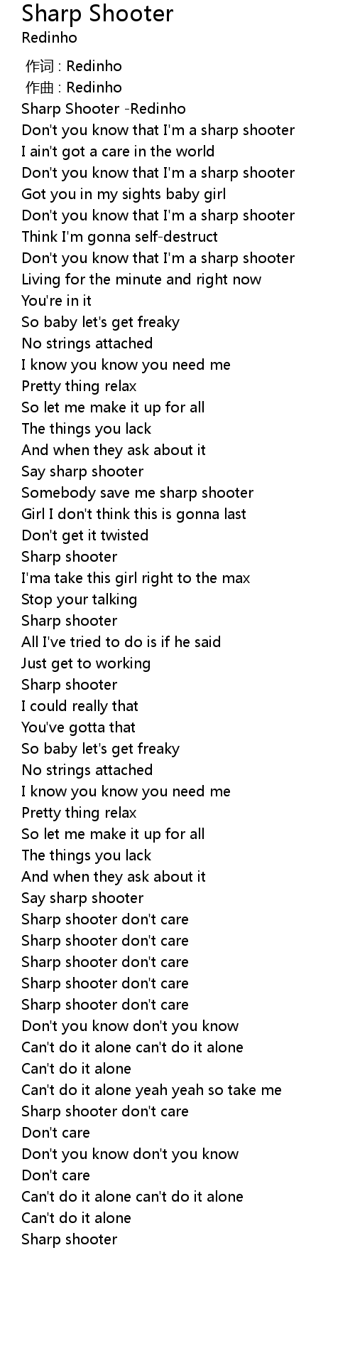 | [00:50.892] | Don't you know that I'm a sharp shooter |
