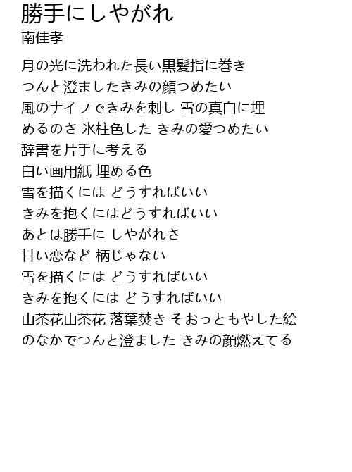 | 風のナイフできみを刺し 雪の真白に埋 | |