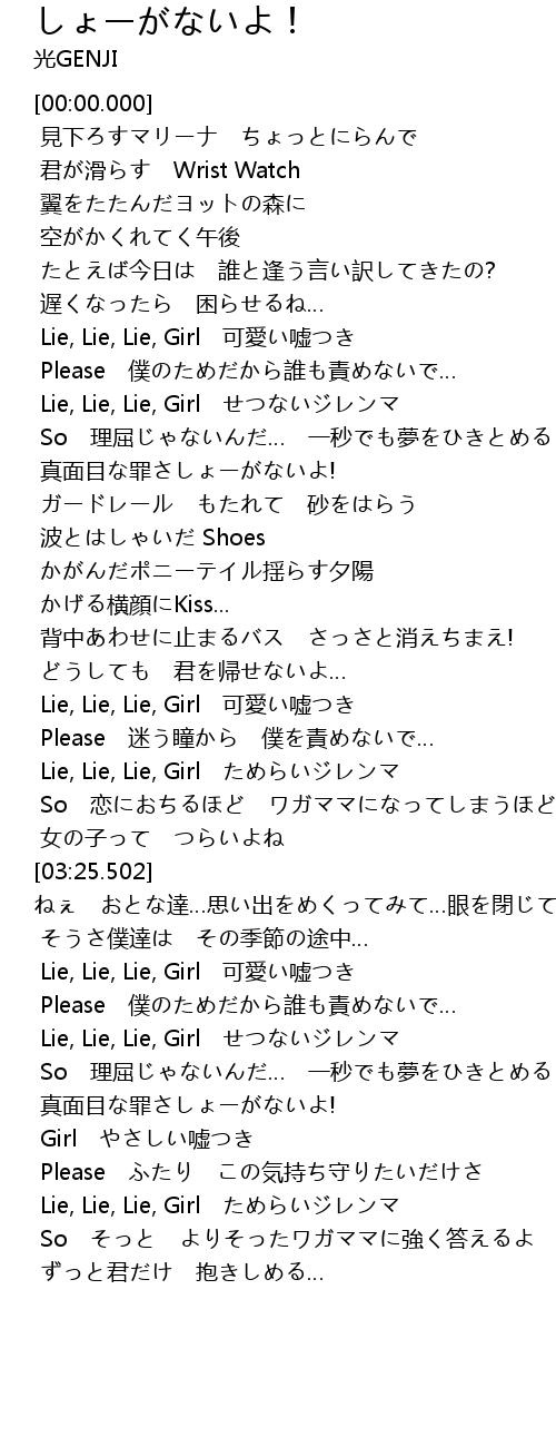 | [02:58.326] | Lie, Lie, Lie, Girl ためらいジレンマ |