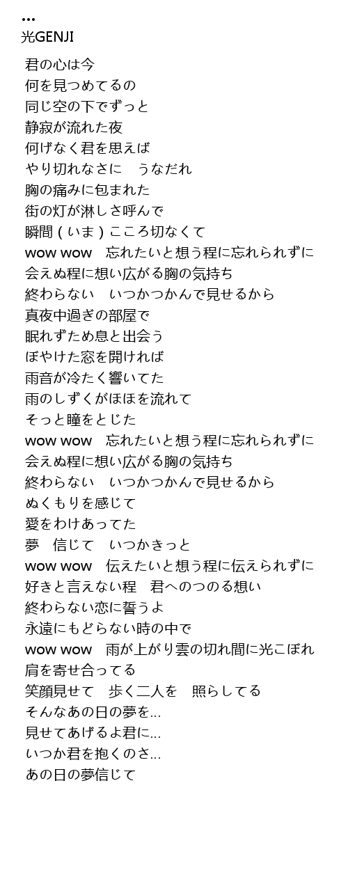 | [03:25.964] | wow wow 伝えたいと想う程に伝えられずに |