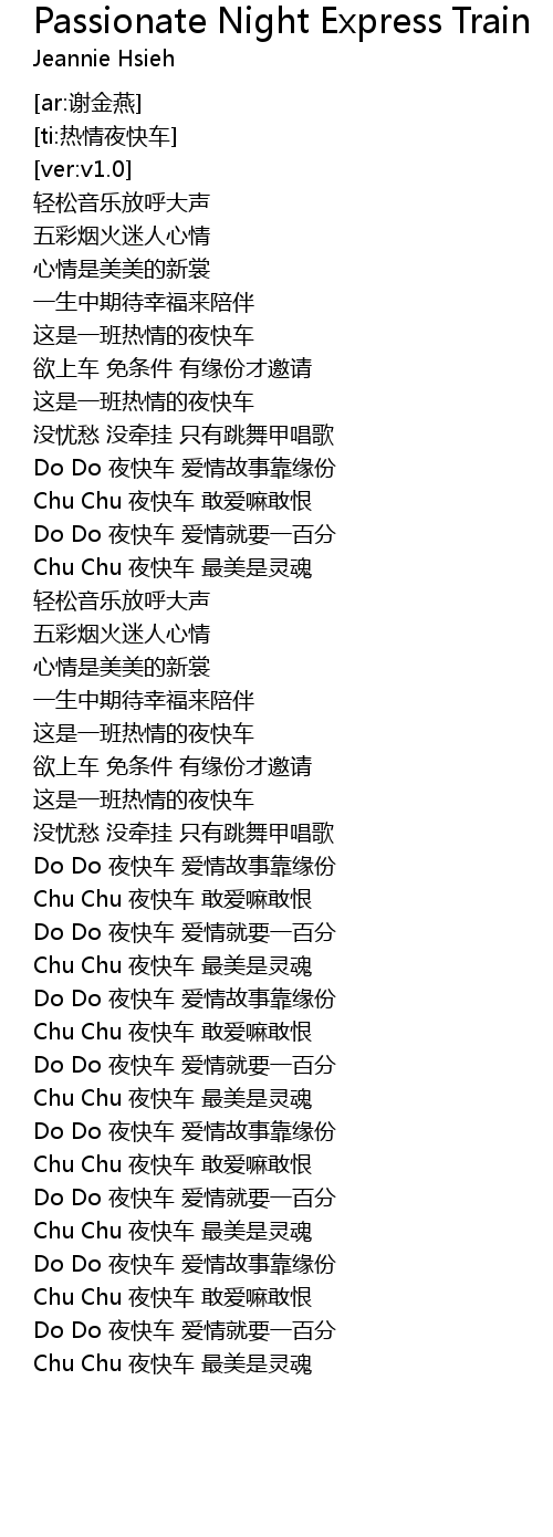 | [01:02.59] | Do Do 夜快车 爱情故事靠缘份 |