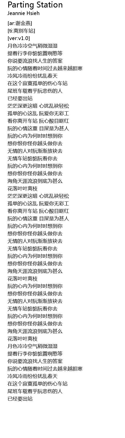 | [00:37.87] | 在这个寂寞孤单的伤心车站 |