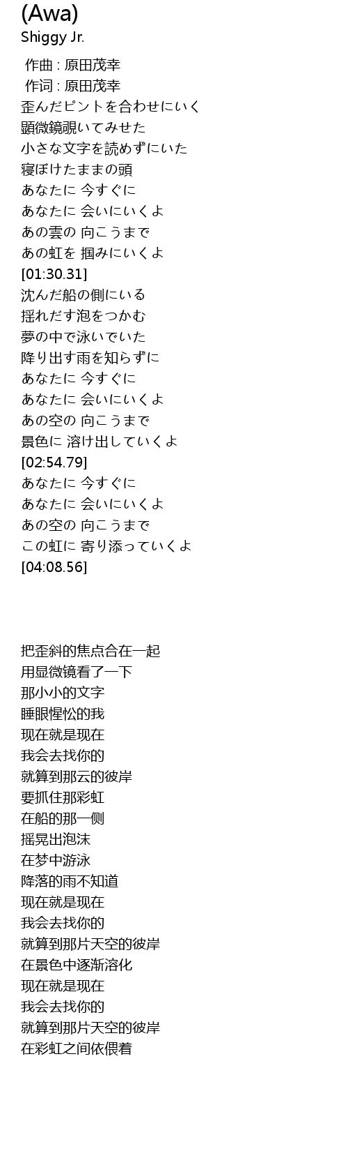 | [00:17.21] | 歪んだピントを合わせにいく |