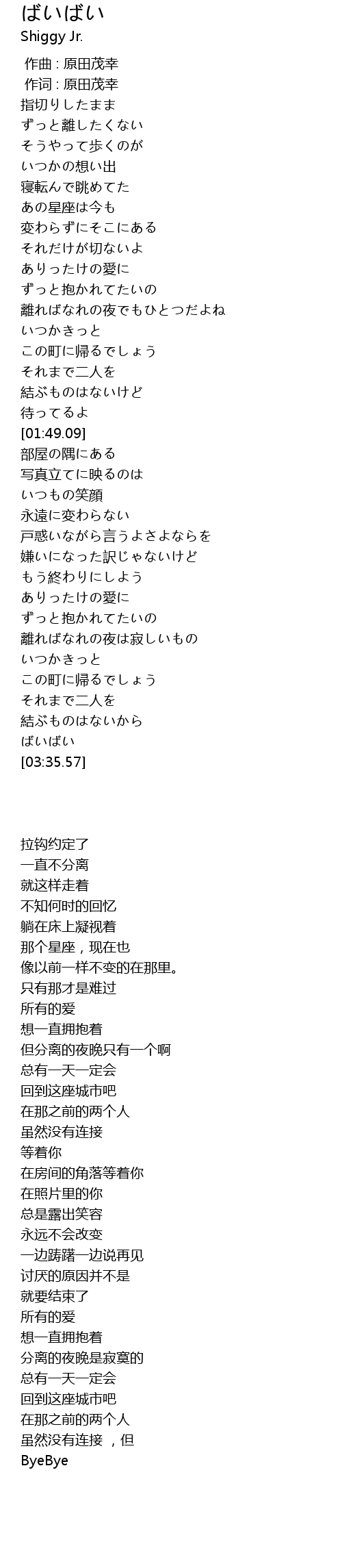| [02:59.42] | 離ればなれの夜は寂しいもの |
