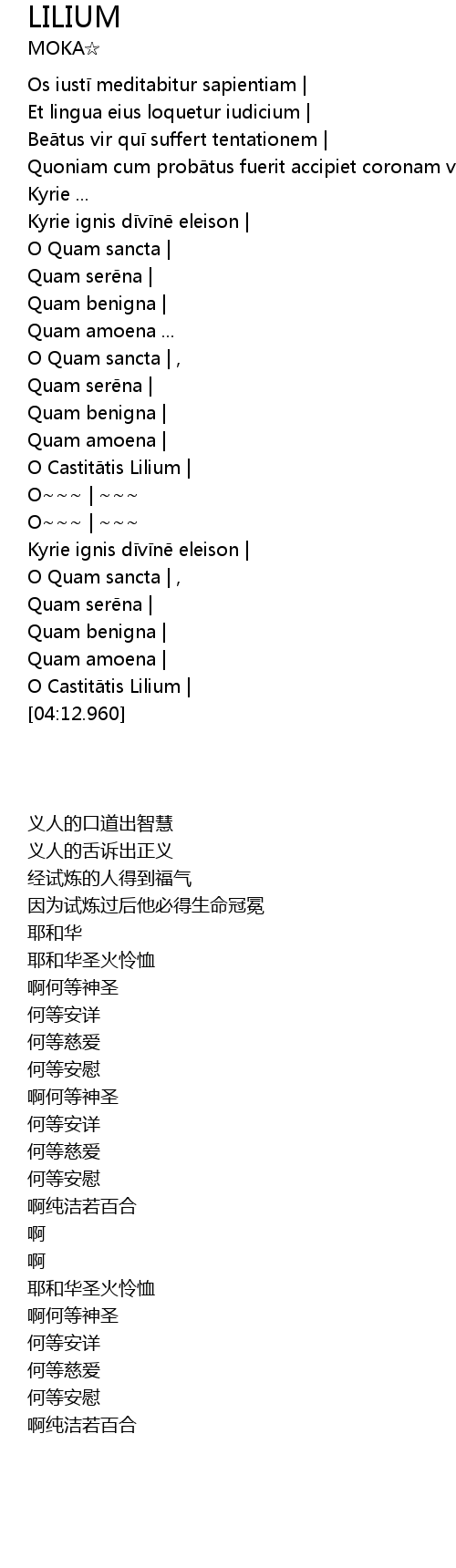 | [03:44.650] | O Castitātis Lilium | |