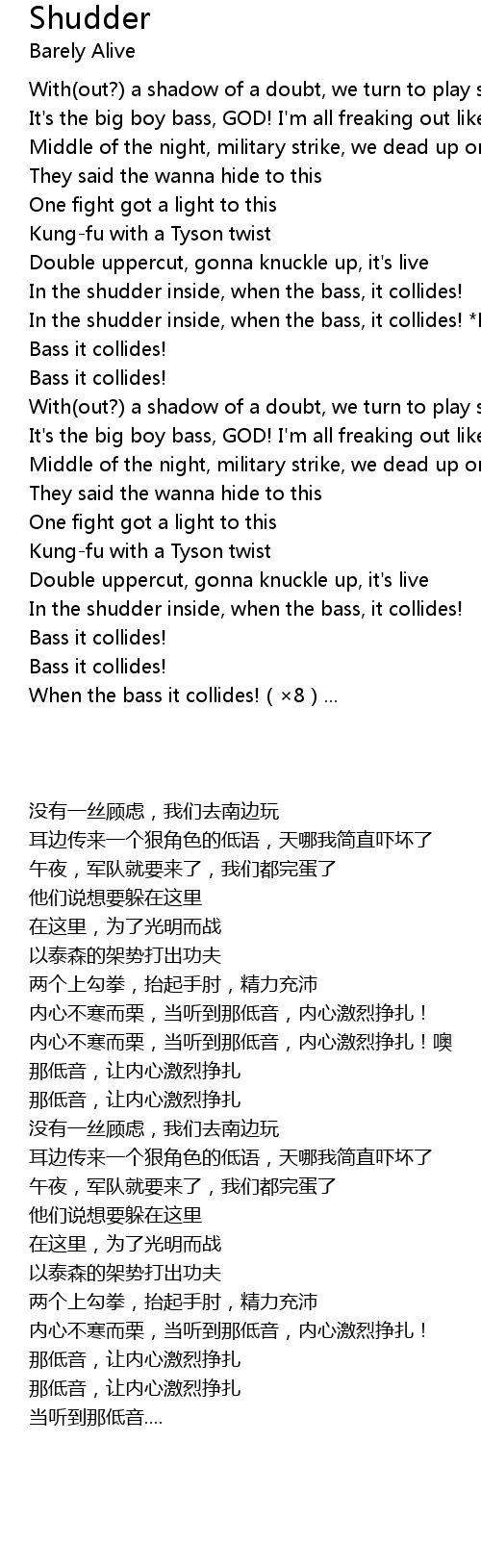 | [00:41.38] | In the shudder inside, when the bass, it collides! |