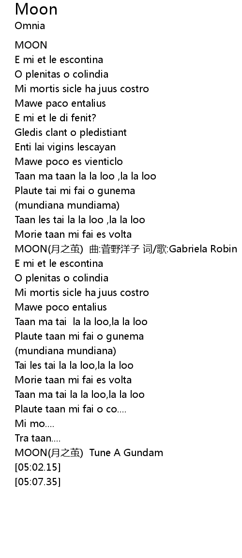 [02:02.54] MOON(月之茧) 曲:菅野洋子 词/歌:Gabriela Robin