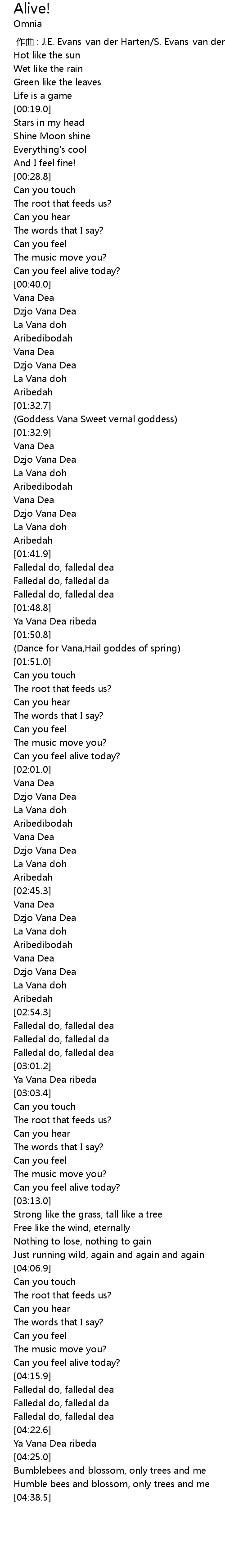 | [00:36.3] | Can you feel alive today? |