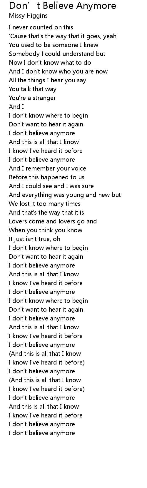 I don't believe anymore |