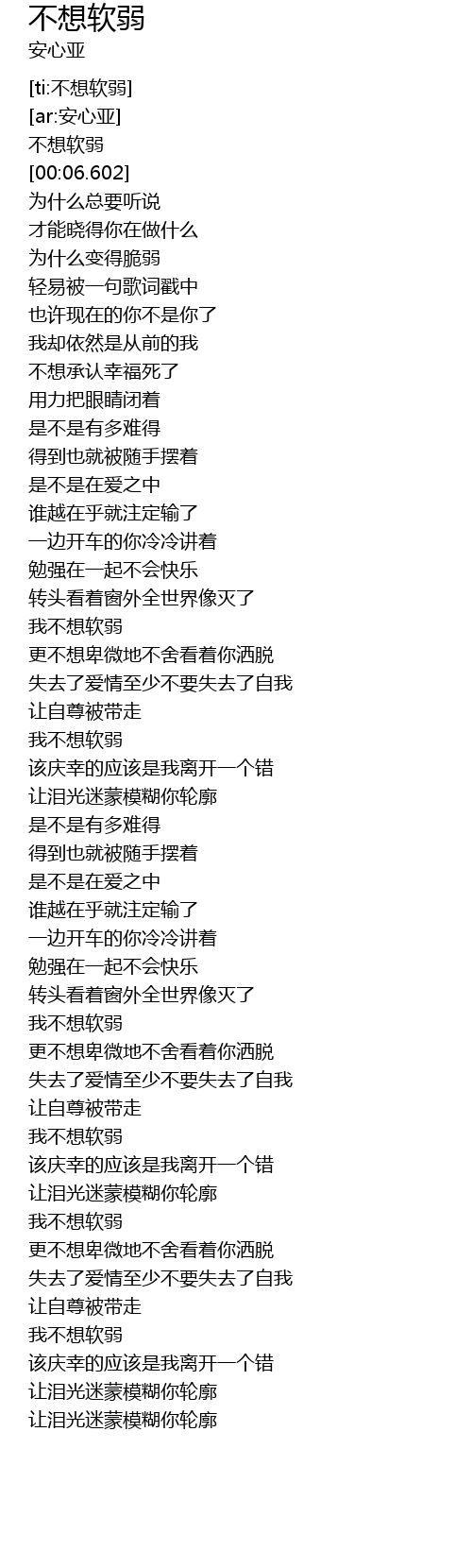 | [00:00.187] | 不想软弱 |