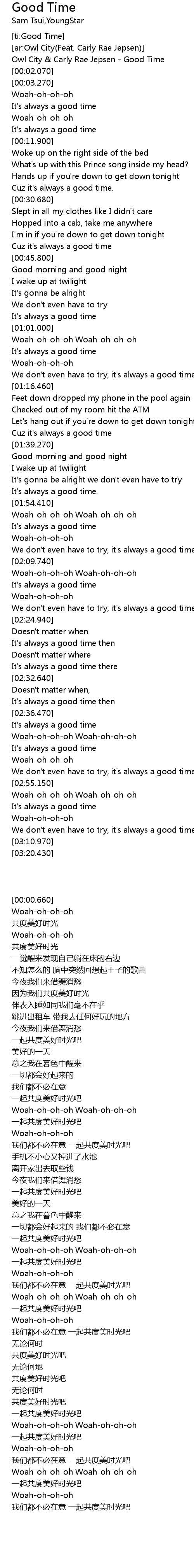 | [00:00.660] | Owl City & Carly Rae Jepsen - Good Time |