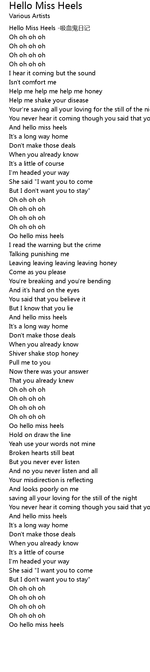 | [00:00.670] | Hello Miss Heels -吸血鬼日记 |