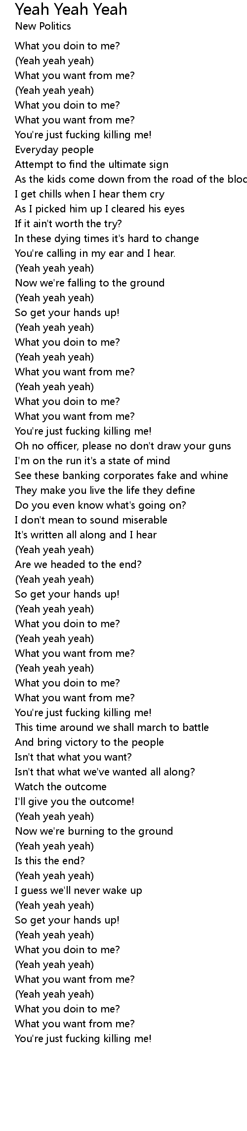 Yeah Yeah Yeah Lyrics