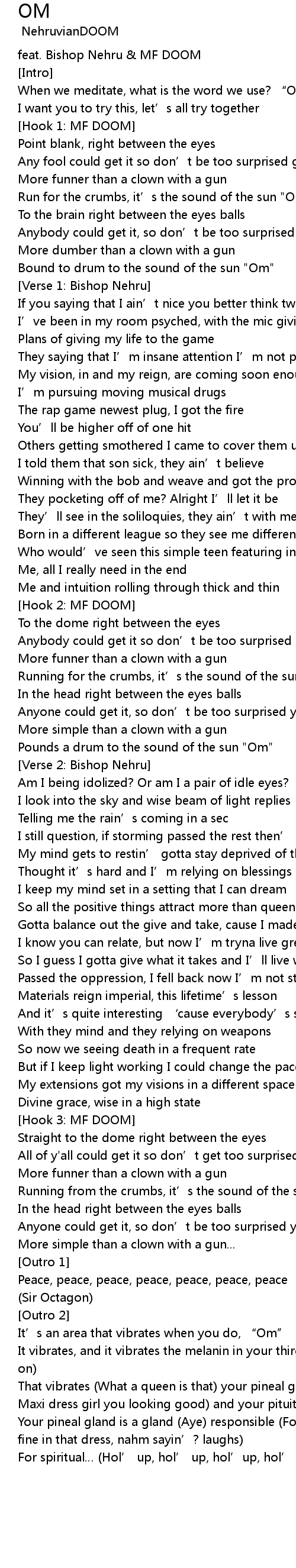 | Running from the crumbs, it' s the sound of the sun " Om" | |