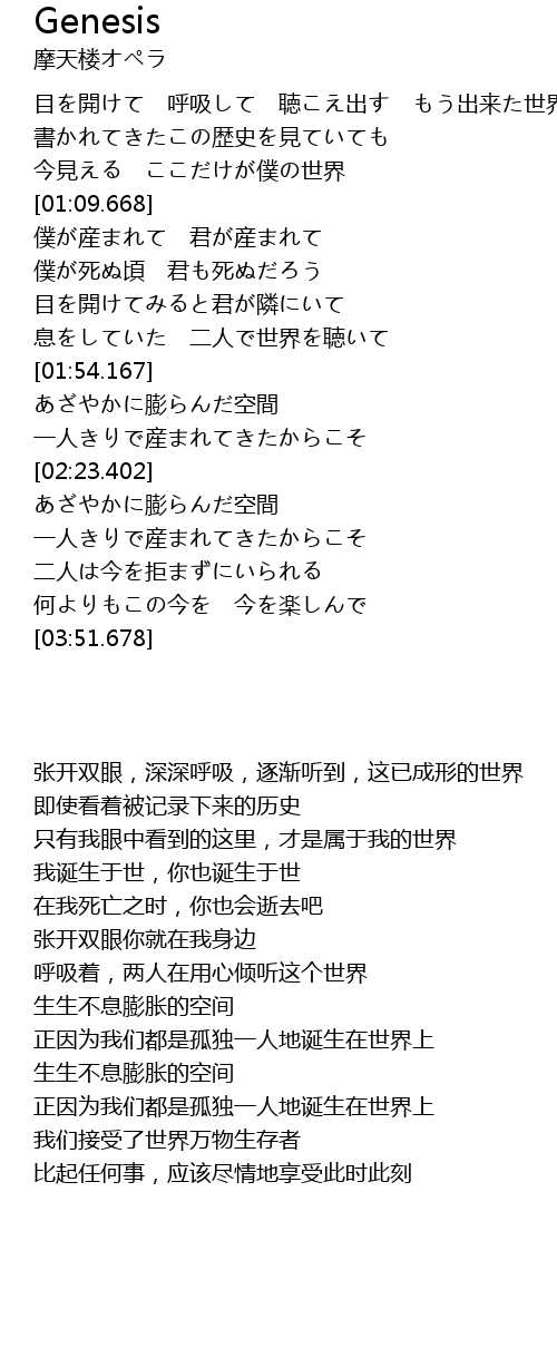 | [00:37.509] | 目を開けて 呼吸して 聴こえ出す もう出来た世界 |