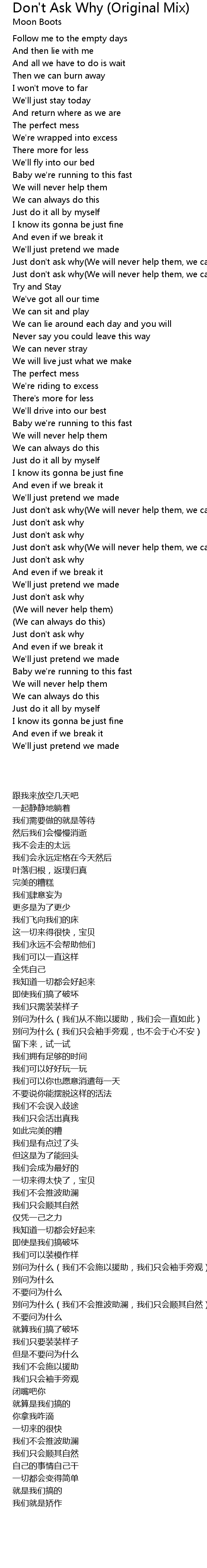 Don't Ask Why (Original Mix) Lyrics