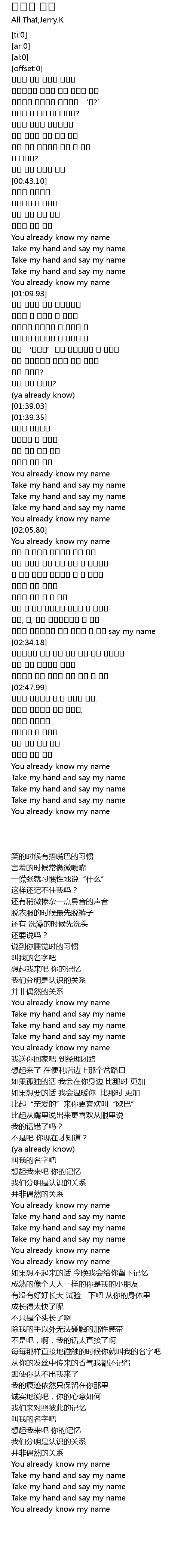 | [00:43.81] | 말해줘 내이름을 |