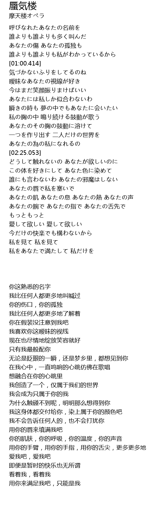 | [03:42.083] | あなたの腕で あなたの指で あなたの舌先で もっともっと |